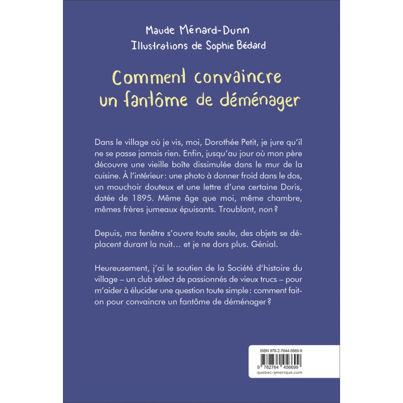 Dans le village où je vis, moi, Dorothée Petit, je jure qu’il ne se passe jamais rien. Enfin, jusqu’au jour où mon père découvre une vieille boîte dissimulée dans le mur de la cuisine. À l’intérieur : une photo à donner froid dans le dos, un mouchoir douteux et une lettre d’une certaine Doris, datée de 1895. Même âge que moi, même chambre, mêmes frères jumeaux épuisants. Troublant, non ?